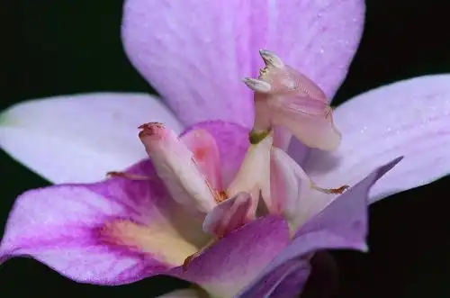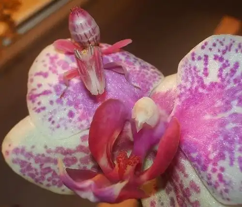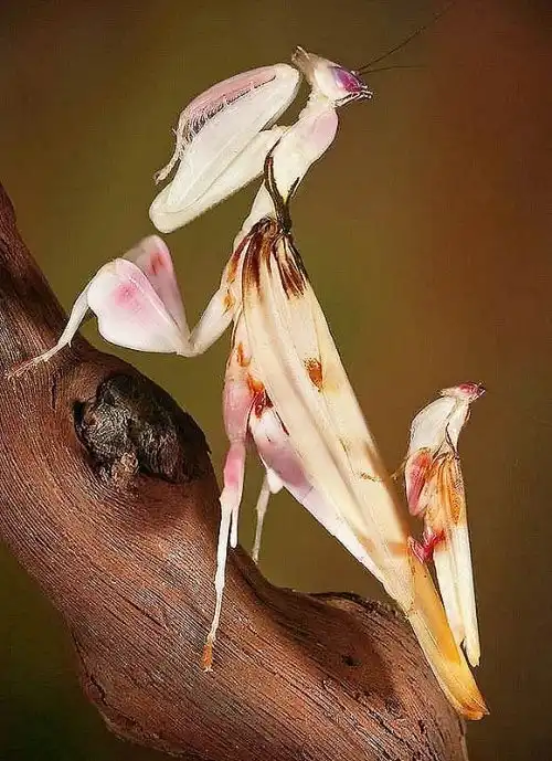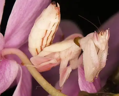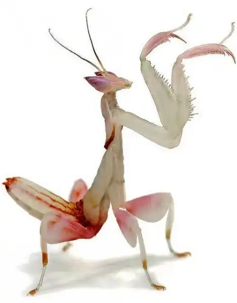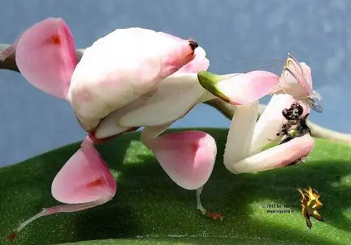 Все мы знаем, что богомолы отлично владеют искусством маскировки, прикидываясь различными листиками и палочками в ожидании своей жертвы. Но есть особый вид этих насекомых, представители которого прячутся в цветах – орхидеях, жасминах, в цветках папайи и других цветущих деревьев. Этот вид называется Орхидейные богомолы (Hymenopus coronatus).