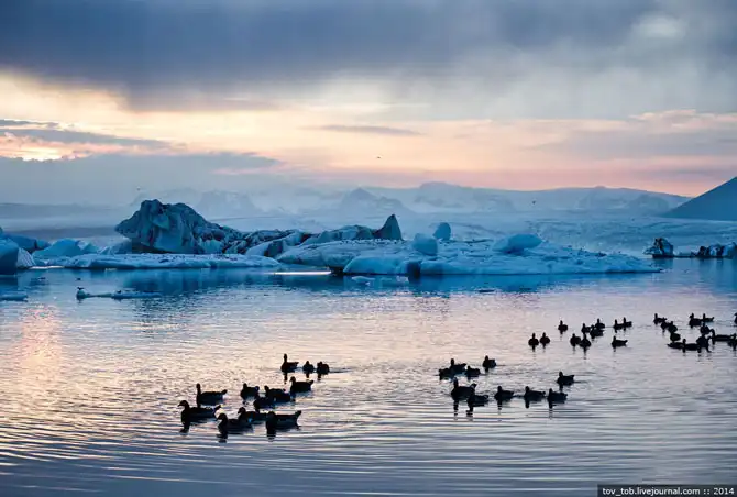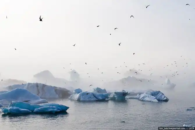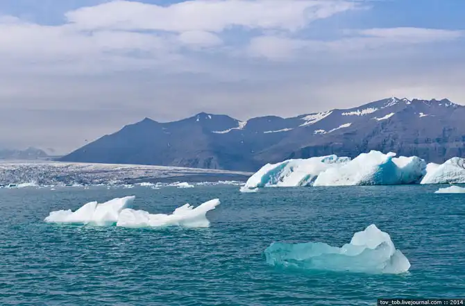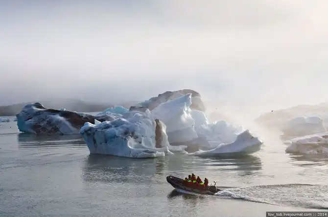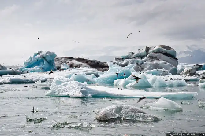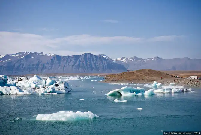 Возле выхода лагуны в океан находится нагромождение льда и айсбергов, которые и привлекают внимание многочисленных туристов. Впрочем, несмотря на обилие людей в дневное время, здесь легко можно найти место, где их вообще нет — благо Лагуна достаточно большая.