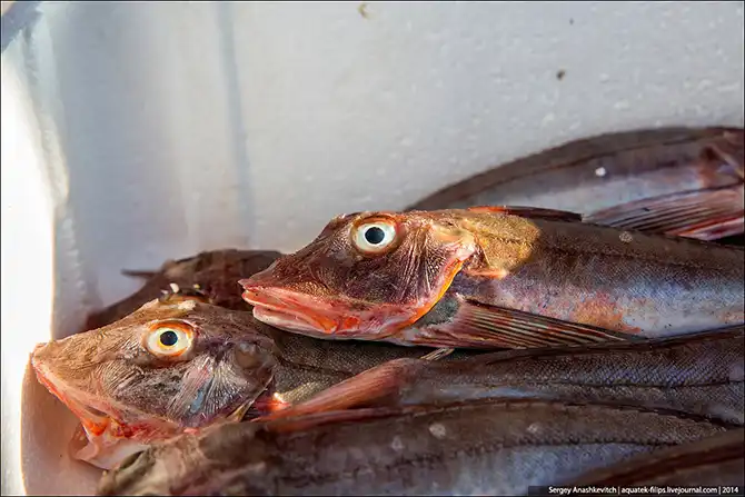 Каждый раз, когда я прихожу к рыбным местам на Севастопольском центральном рынке, я просто поражаюсь выбору даров Черного моря, представленных в продаже, — в хорошие дни несколько видов мелкой свежей рыбы, запрещенный к вылову калкан из-под полы, креветка-усик, ну и замороженные дары чужих морей в разных видах и количествах. Рыбным рынком в городе на берегу моря и не пахнет…