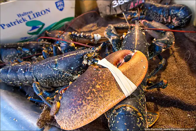 А вот и свежий голубой омар или, как их еще называют, лобстеры.