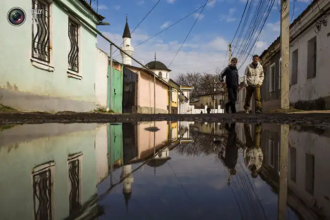 Российские солдаты воле украинской воинской части в селе Перевальное, Крым.