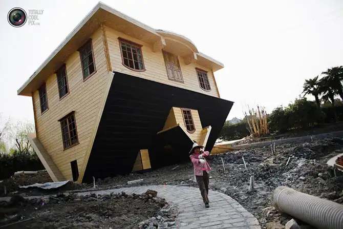 Строительство перевёрнутого дома в Цзиньшане, Шанхай, Китай.