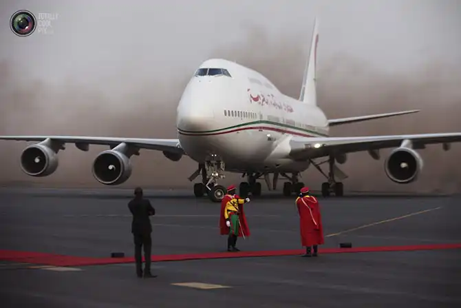 Самолёт короля Марокко Мухаммеда VI прибывает в Бамако, Мали.