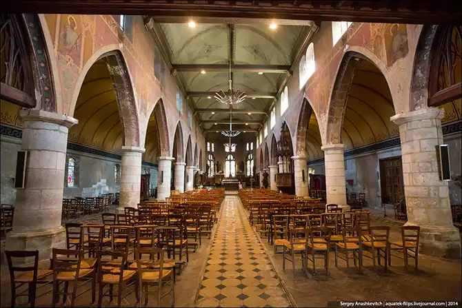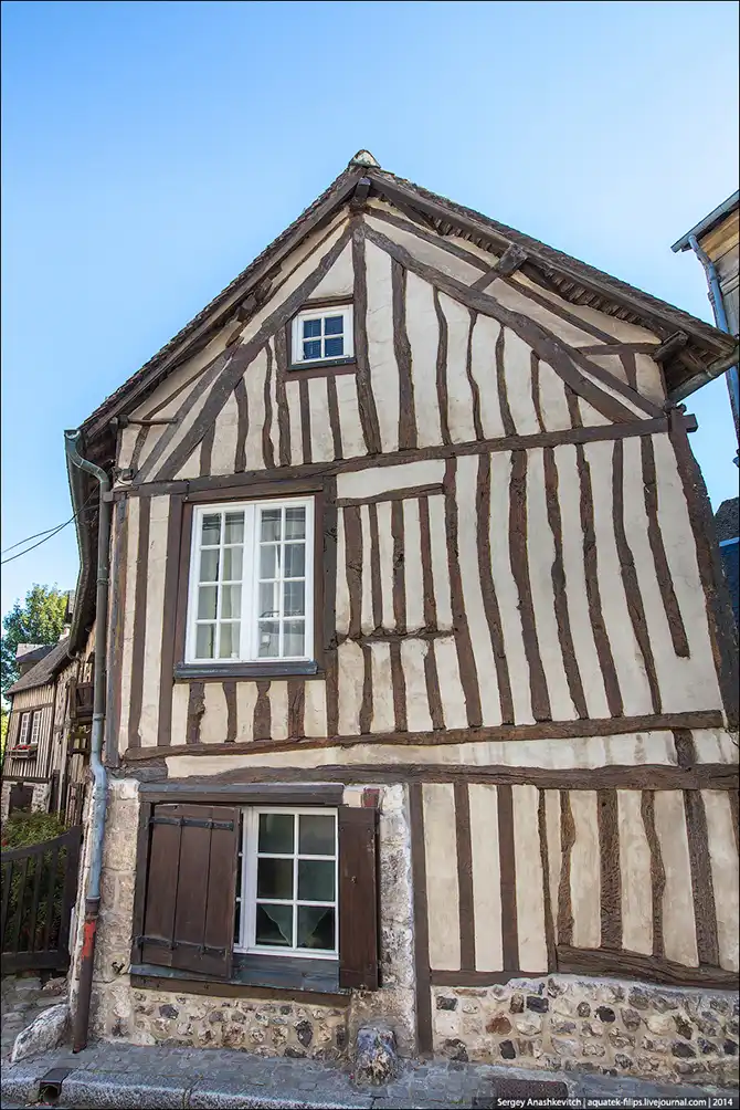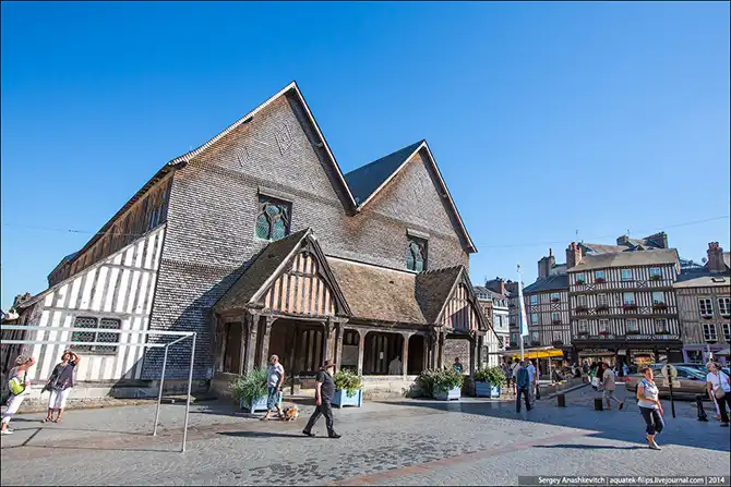 Это знаменитая церковь Святой Екатерины, самая большая деревянная церковь Франции. Построена она была в 15 веке, во время Столетней войны, местными мастерами-корабелами, а потому в ее облике прослеживается явное сходство с кораблем.