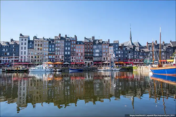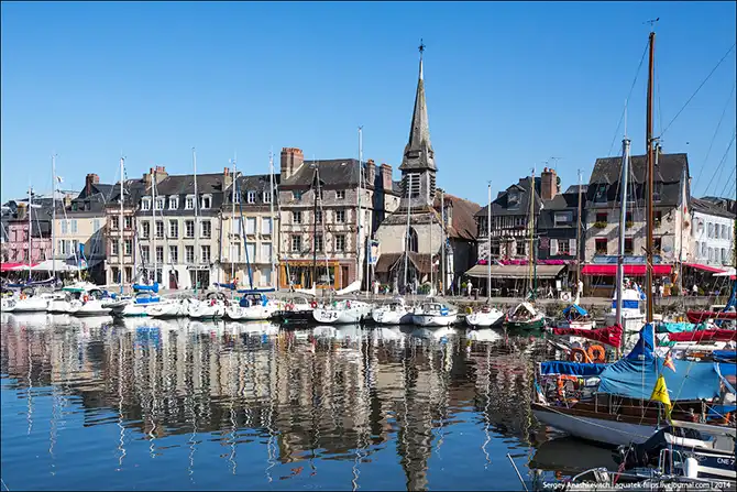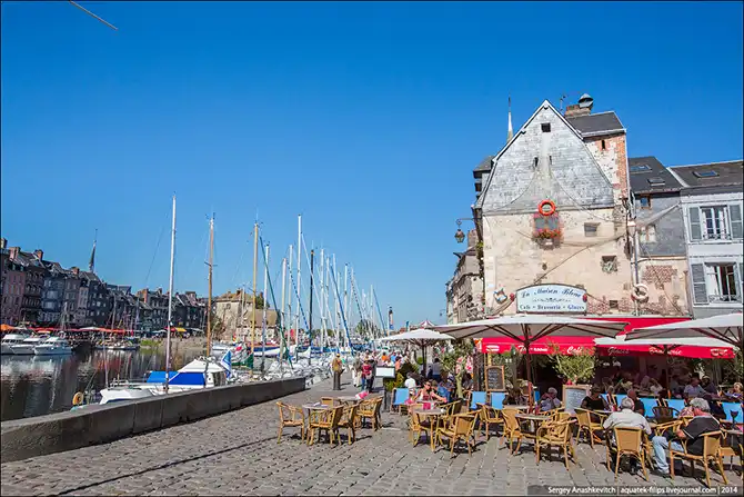Именно на это мостовой, там где сейчас стоят столики кафе, располагали и располагают свои мольберты десятки известных и неизвестных художников. И художников можно понять. Откуда не посмотри на гавань Онфлёра, она выглядит безумно красивой.
