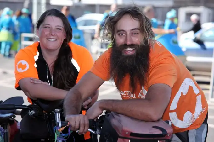 Лондонская пара стартовала из Новой Зеландии в апреле 2012 г. и за 674 дня пересекла три континента, крутя педали своего "дома-на-колёсах".