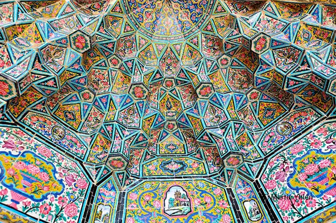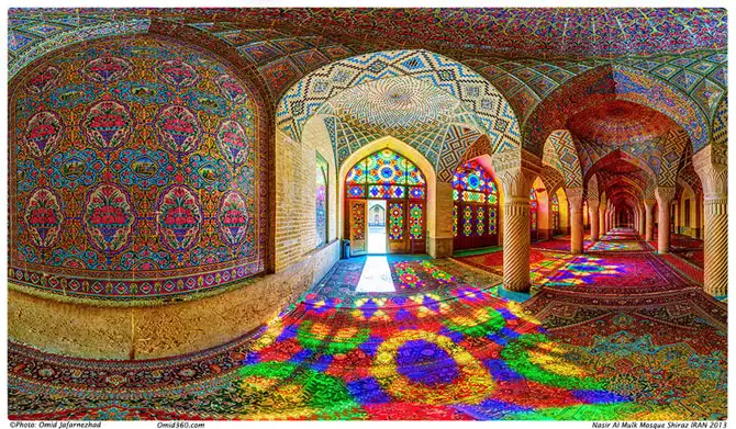 Мечеть Насир Аль-Мульк в Ширазе (Иран) влечет к себе огромное количество путешественников и восхищает их не столько внешней архитектурой, сколько внутренним убранством и интерьером. Войдя внутрь человек поражается декоративными элементами и красочным великолепием, созданным искусными мастерами. Особенно мечеть прекрасна в утренние часы, когда первые лучи восходящего солнца по-настоящему играют на узорах в яркий и славный калейдоскоп.