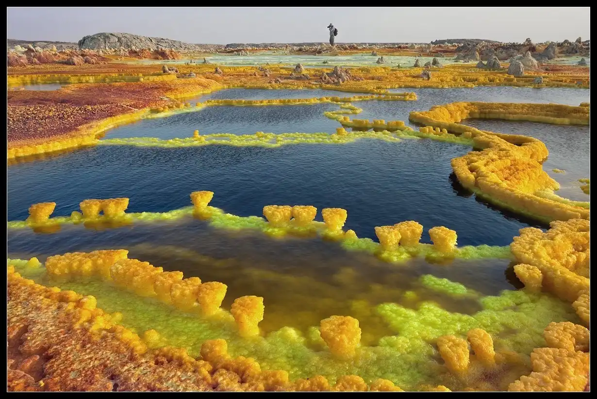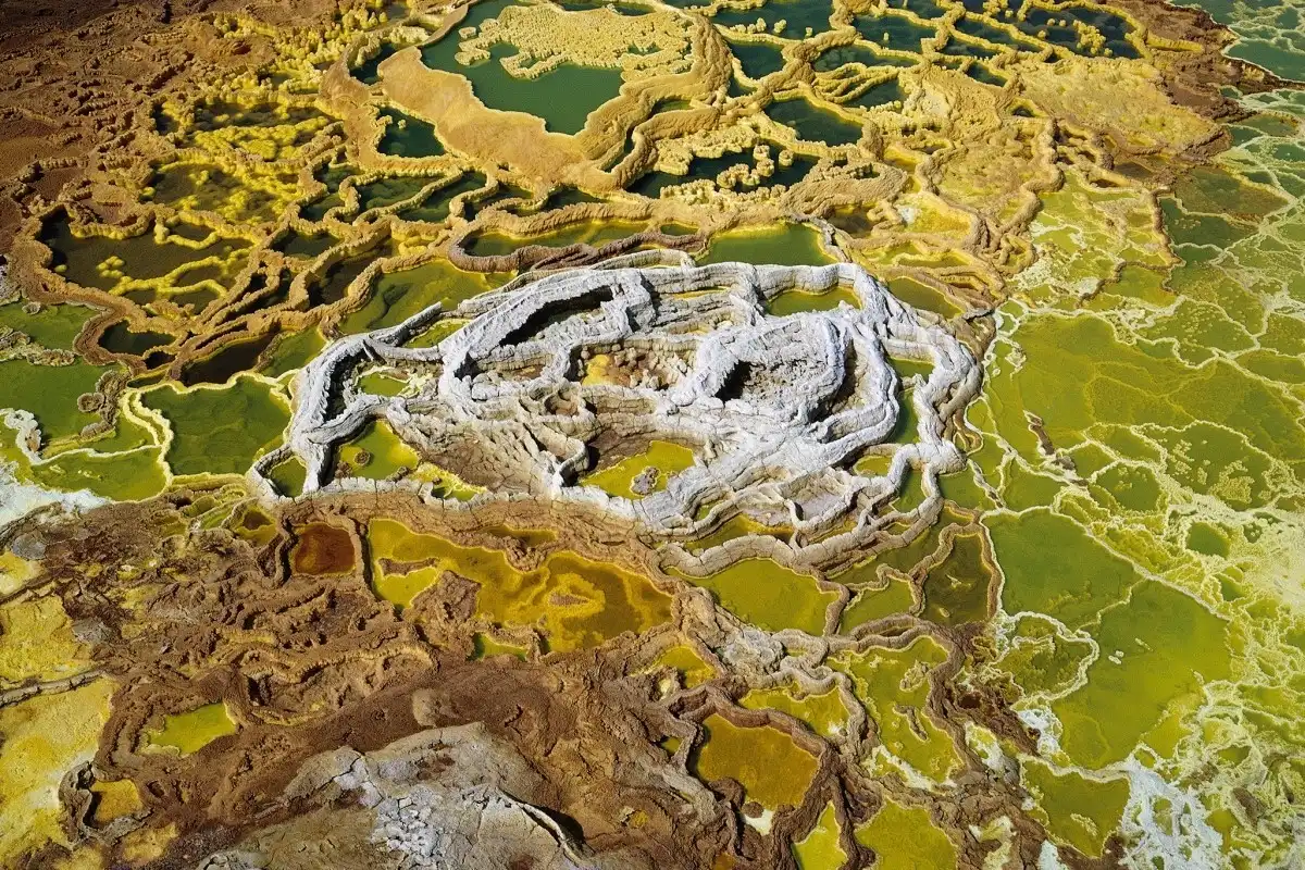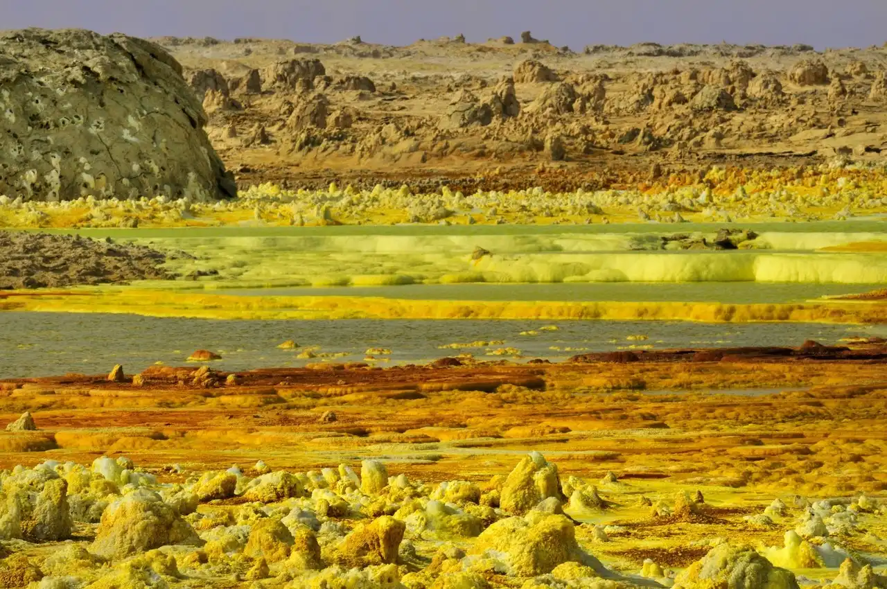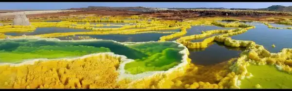Вулкан Даллол (Dallol) - самый низкий вулан в мире, находящийся на 48 метров ниже уровня моря и имеющий диаметр кратера 1450 м, образовался на планете более 900 млн лет тому назад. Среднегодовая температура на Даллоле также уникальна. В 60-е годы XX века она составила 34° по Цельсию, что и по сей день остается максимальной среднегодовой температурой.