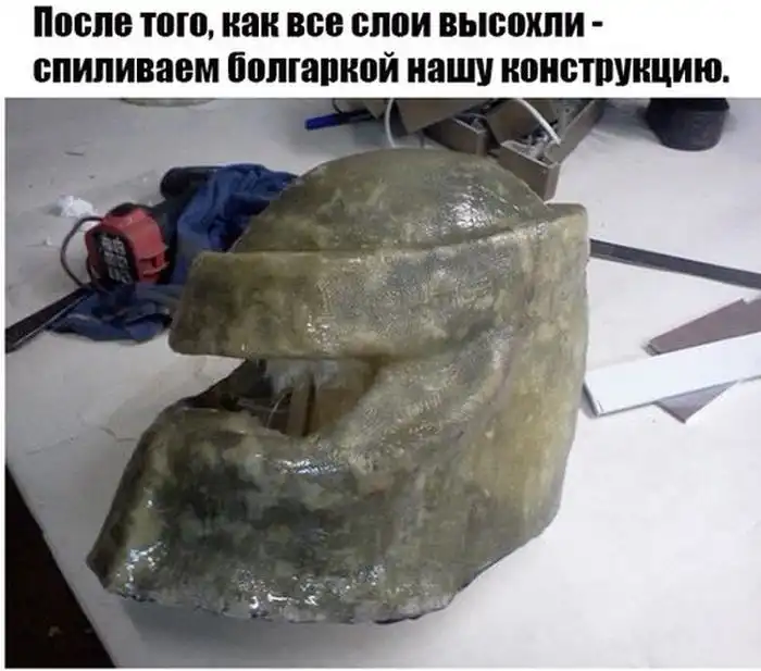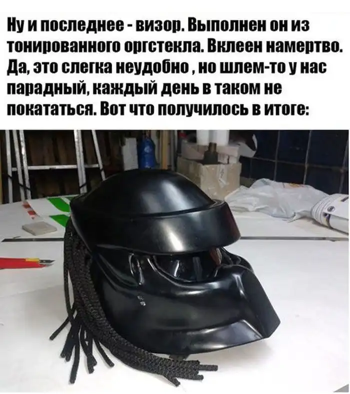 Небольшой фотоотчет о том, как превратить обычный мотоциклетный шлем в крутую маску "Хищника".