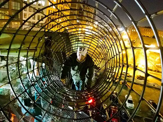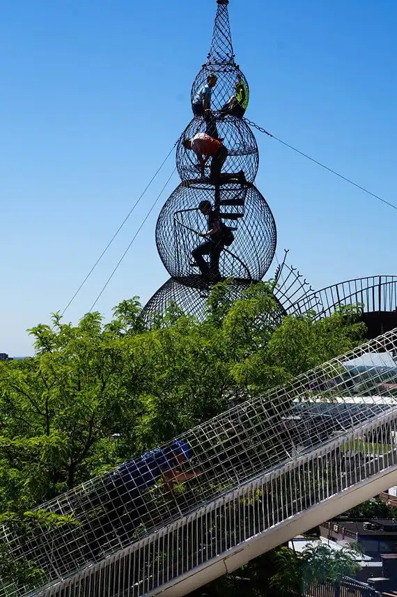 На игровой площадке MonstroCity при городском музее Сент-Луиса есть все, что может быть интересно детям и не только. Два настоящих фюзеляжа самолетов, подвешенных высоко над землей, огромное число подвесных ходов и лазов, пожарная машина, замок и много еще чего интересного. На фоне такого веселья поход в музей кажется еще менее привлекательным занятием.