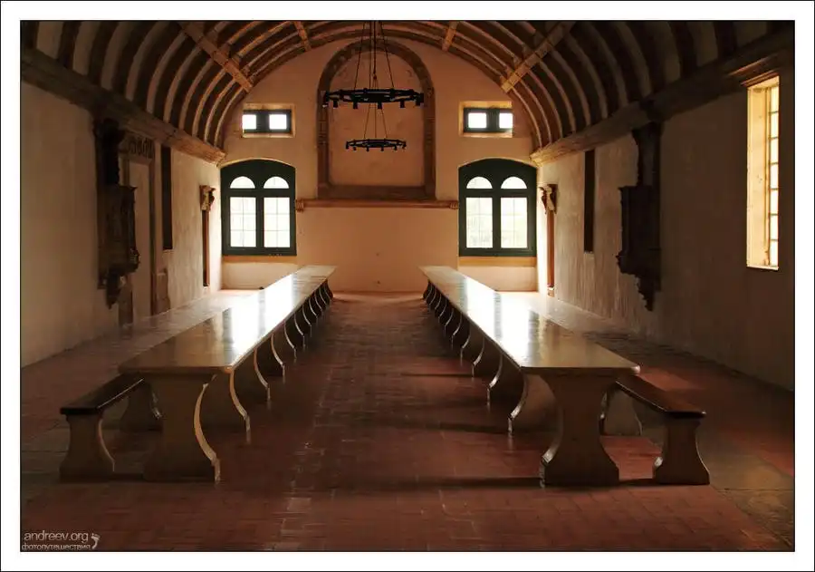 Трапезная тамплиеров. В соседних помещениях была устроена кухня и погреба для масла и вина.