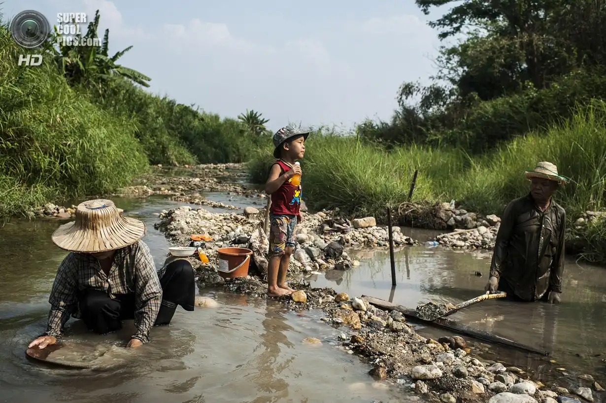 Жители района Вангныа в провинции Лампанг, Таиланд, каждый год в весенний сезон засухи начинают поиски золота на пересыхающих реках. За день они успевают собрать самородков в среднем на $15. В наиболее успешные сезоны эта цифра может увеличиваться до $200, как было два года назад — тогда уровень воды упал намного больше обычного, позволив собрать небывалый «урожай». Фермеры, превратившиеся в золотоискателей, начинают работу с самого утра, заканчивая только на закате. Для большинства из них это важная сезонная работа, позволяющая прокормить семью.