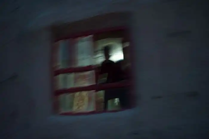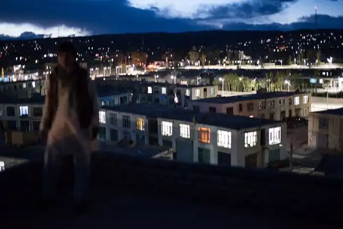 Человек на крыше магазина – сторож: все заведения в городе тщательно охраняются. Чагчаран.