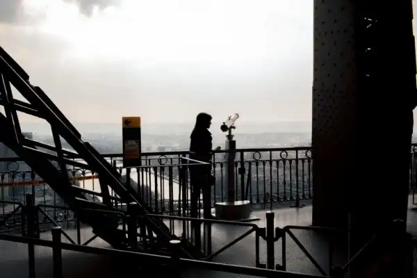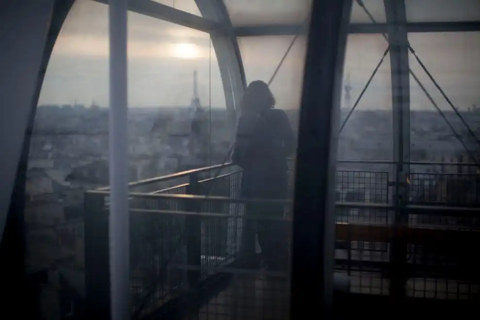 Женщина фотографируется на вершине Эйфелевой башни, 26 марта 2014 года.