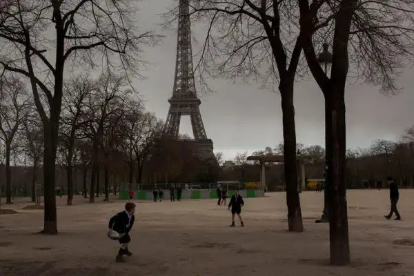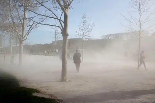 Ветер поднимает пыль на Марсовом поле, 20 марта 2014 года.