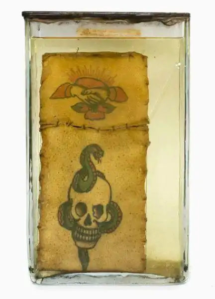 В Ягеллонском университете в Кракове есть оригинальная коллекция криминальных татуировок. Их наносили с помощью иглы и паленой резины, угля и прочего говна. После смерти зэков куски кожи вырезались и помещались в банки с формальдегидом, так что теперь любой желающий может полюбоваться наколками вживую.