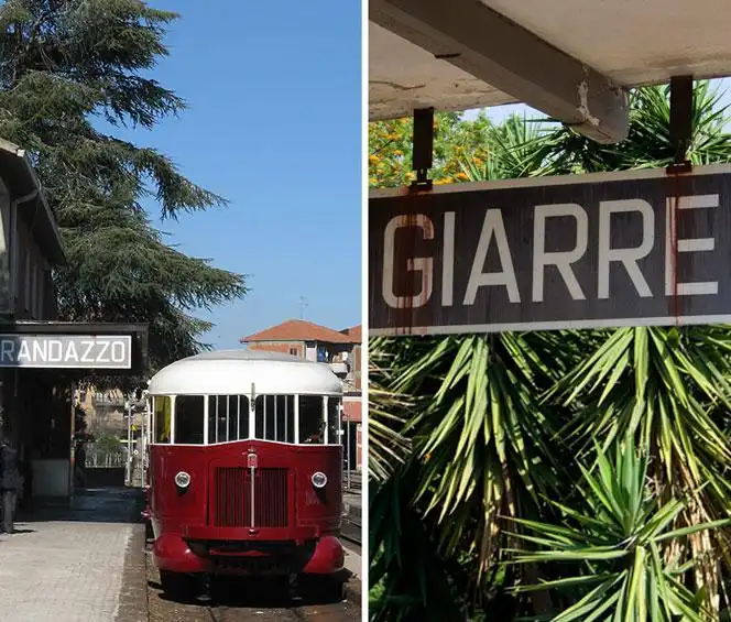Железная дорога была построена между 1889 и 1895, и теперь по узким 950-миллиметровым рельсам ходит единственный трамвай. В зависимости от сезона и от различных погодных условий, одна поездка по живописному маршруты вокруг Горы Этна может продлиться до 5 часов.