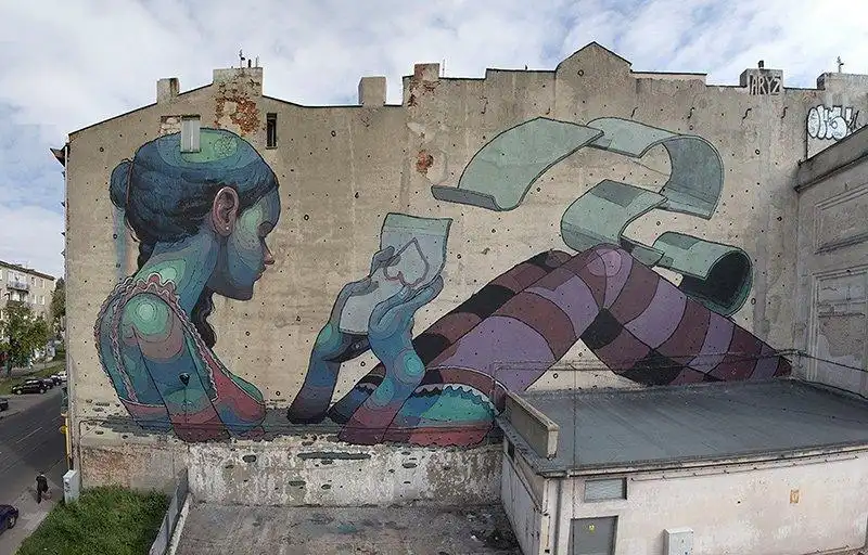 Уличные рисунки Aryz отличаются не только своей масштабностью, но еще и сюрреалистичностью. Его работы достаточно трудно отыскать в многочисленных улочках заброшенных или тихих районов многих европейских городов.