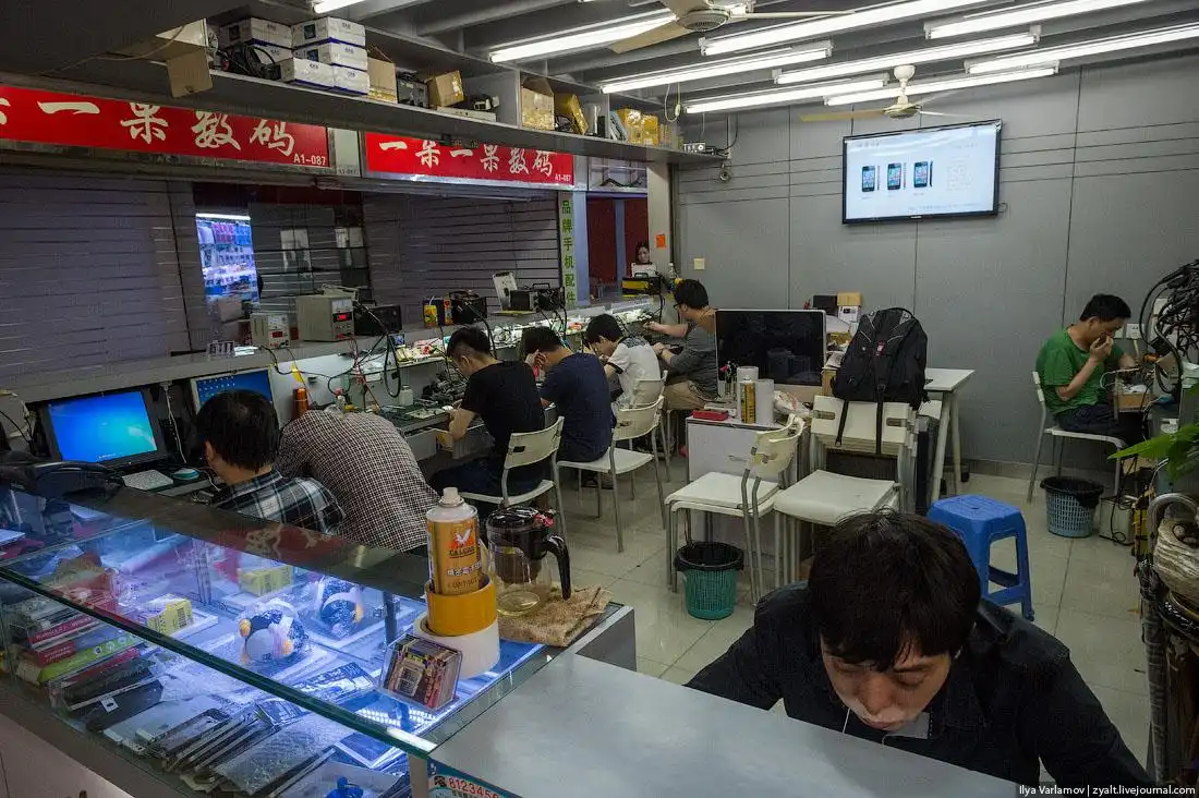 В каждом из этих небоскребов расположены либо рынки электроники, либо офисы торговцев.