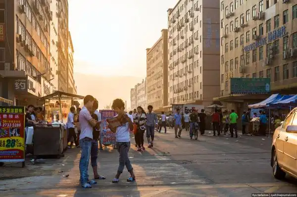 Я приехал ближе к концу дня. Рабочие вывалили на улицу, чтобы перекусить. Средняя зарплата на китайской фабрике - 3 доллара в час. Но никто не пойдет работать 8 часов. Главное в жизни китайского рабочего - переработки! Ведь за сверхурочные платят полторы ставки, а за работу в выходные - двойную ставку! Именно поэтому все рабочие в 17-30 выходят с фабрики, чтобы перекусить и в 18-00 заступить на вечернюю смену. Никто домой не уходит.