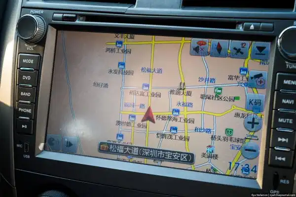 Садимся в машину и едем на север от Шэньчжэня, на навигаторе видно, что в этом районе располагается куча фабрик.