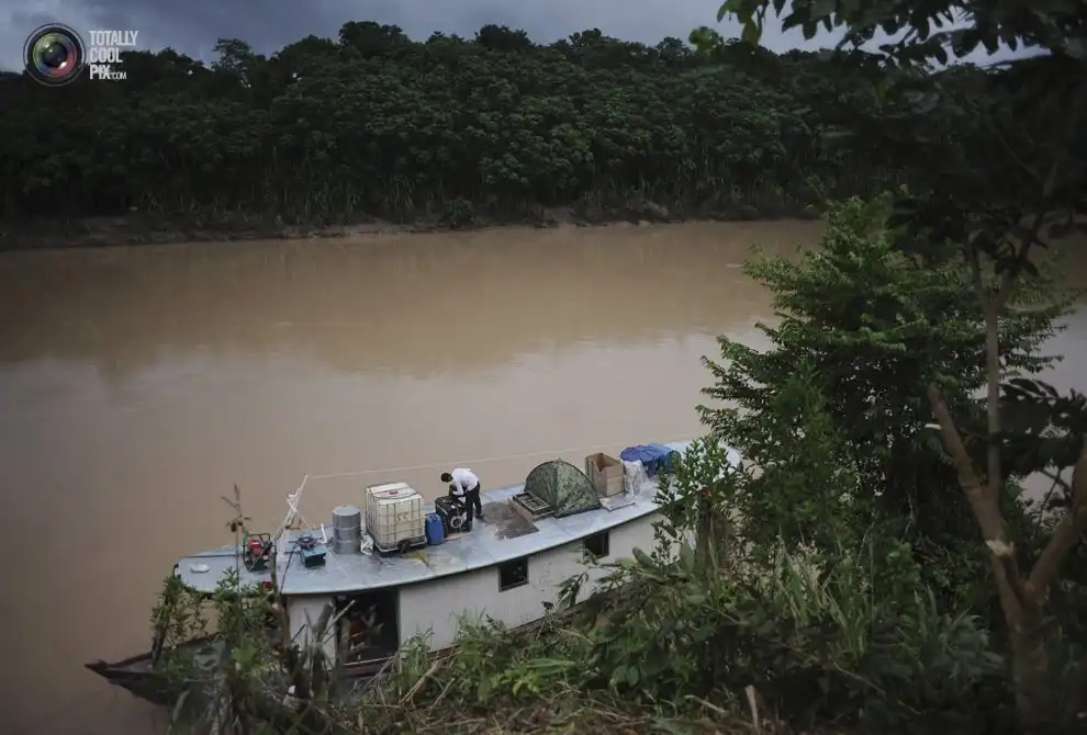 Лодка, на которой вожди индейцев ашанинка плавали осматривать границы своих земель, у берега реки Энвира.