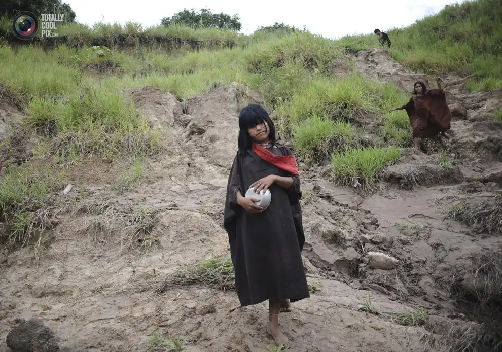 Дети ашанинка бегут к реке Энвира, чтобы встретить лодку, возле деревни Симпатия в штате Акри на северо-западе Бразилии.