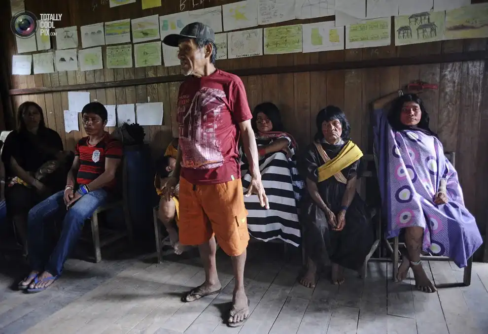 Индейцы ашанинка проводят собрание в деревне Кокасул на берегу реки Энвира