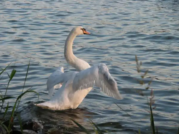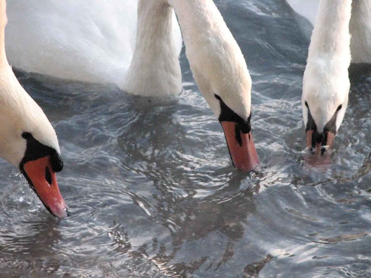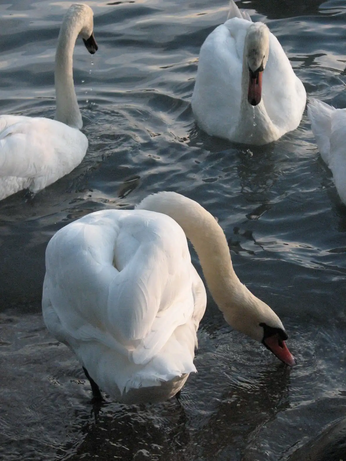 Гуси-лебеди. Кормятся в прибое. Интересные.