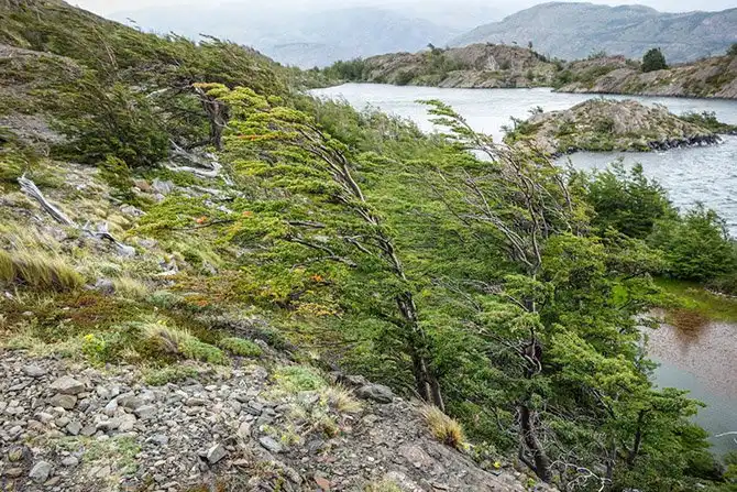 Что ещё? Ветер. Иногда на озерах и перевалах ветер такой, что просто сдувает с тропы недостаточно упитанных туристов. В некоторых случаях излишний вес совсем даже не излишен! А ещё согбенные кусты и деревья, это всё тоже ветер, сильный и практически постоянный.