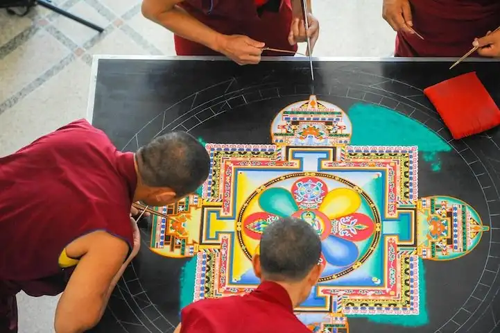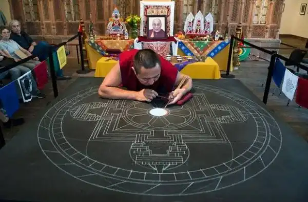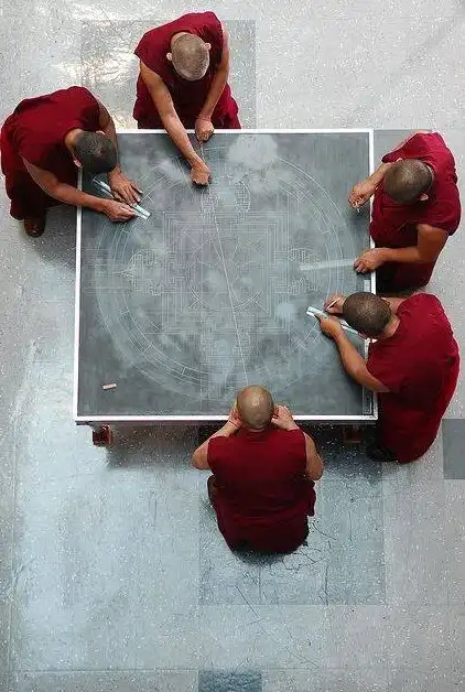 Монахи из Тибетского Монастыря учатся терпению и спокойствию. Одним из способов обучения этой сложной черте характера, является кропотливая работа. На картинках мы видим монахов, которые создают мандалы с помощью цветного песка. Эта работа очень длительная и требует огромного внимания.