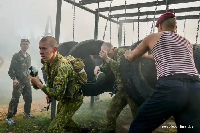 Многие бойцы готовятся к испытаниям по несколько лет — подтягиваются на перекладине, в свободное время наматывают круги по стадиону. Получить краповый в спецназе — покруче, чем «дослужиться» до красного диплома на ФМО Белгосуниверситета. Всего, рассказали нам в пресс-службе внутренних войск, в турнире участвуют 124 человека.