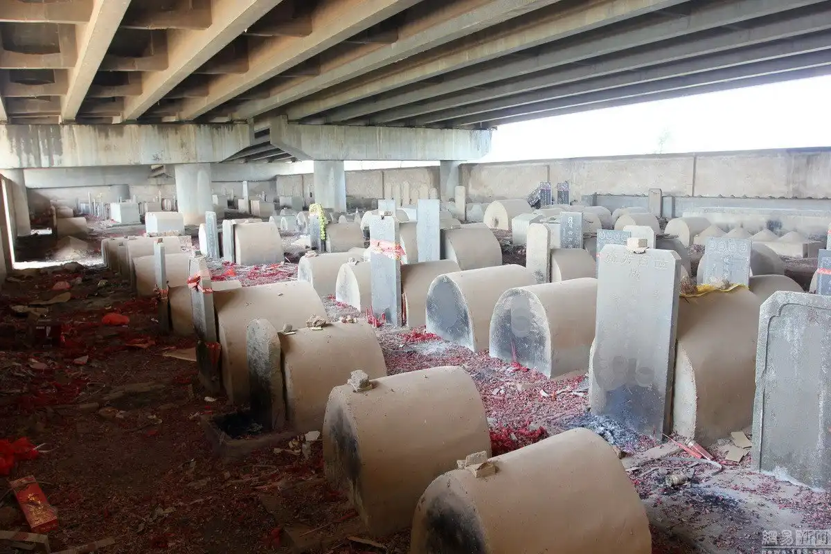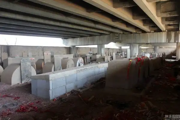 В зоне экономического развития города Ухань, в Китае, обнаружили необычное кладбище. Местные сельские жители хоронят своих родных под мостом, так как в результате массового строительства их деревню в 2008 году лишили места под захоронения. Теперь сельчане уже на протяжении 4 лет вынуждены провожать своих родных под грохот грузовиков, которые проезжают над ними. Кладбище разрастается, теперь здесь насчитывается около ста могил.