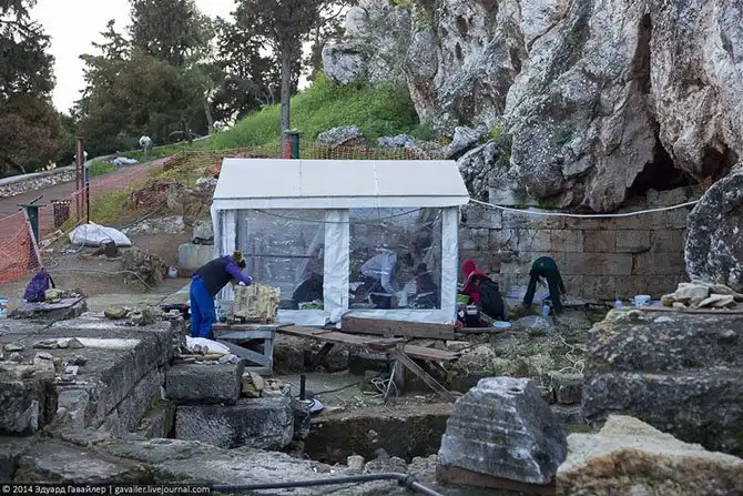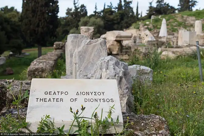 Есть несколько входов и касс. Мы вошли через юго-восточный, тот, где расположен театр Диониса.