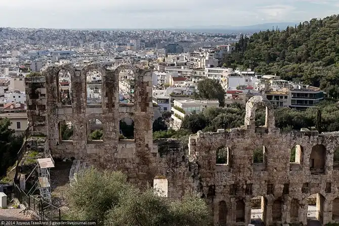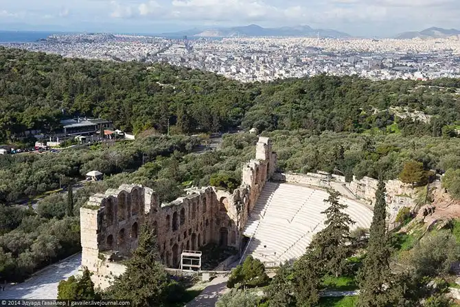 На южном склоне Акрополя очень хорошо сохранился Одеон Герода Аттического.