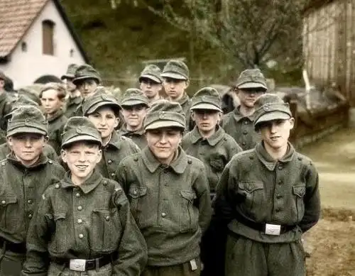 Многие из этих новобранцев были так молоды, что вместо табака и алкоголя входящих в рацион немецкой армии, им дали шоколад и конфеты.