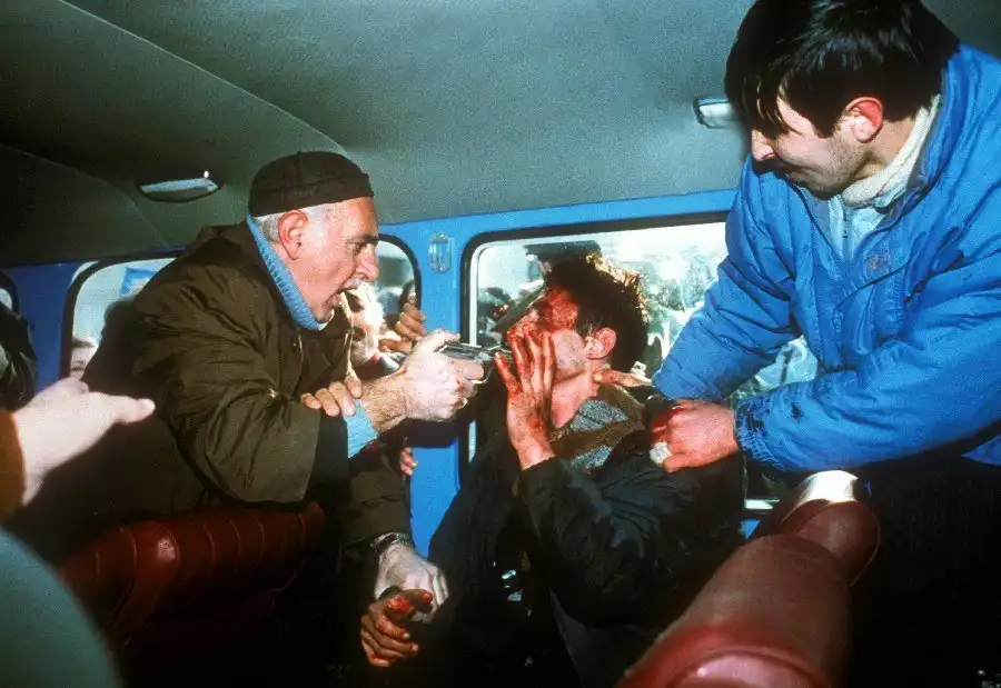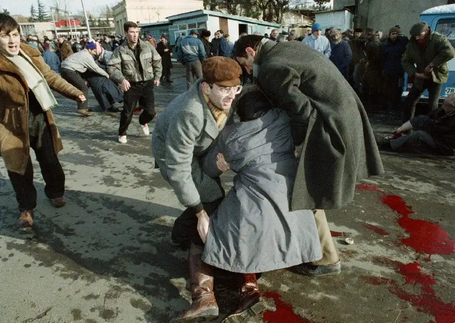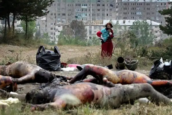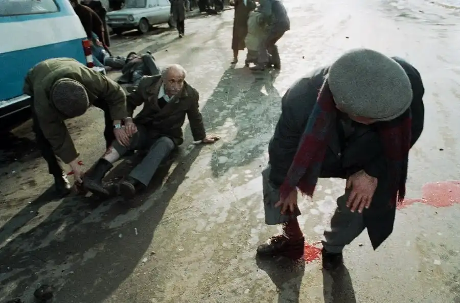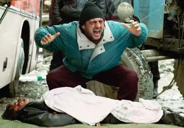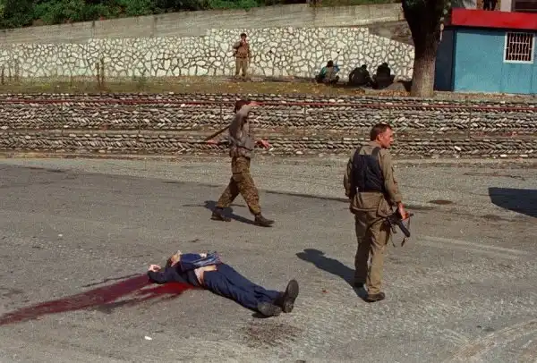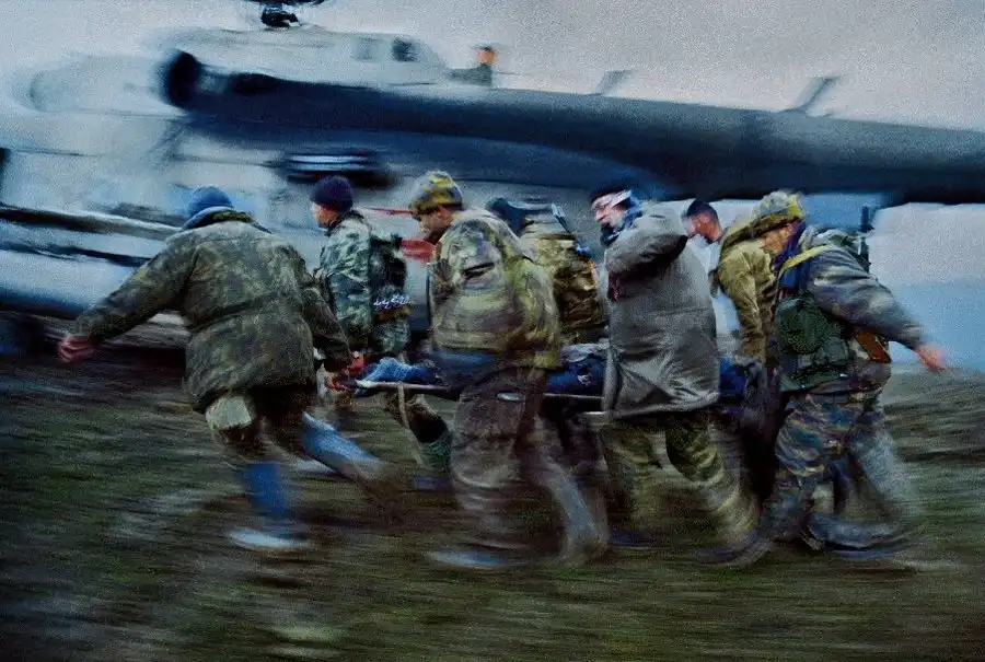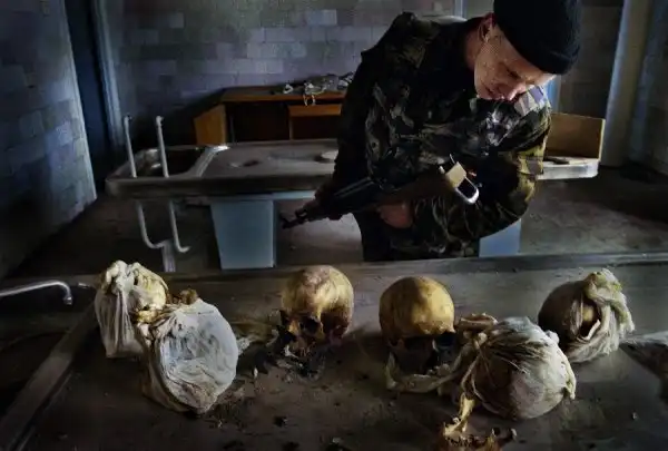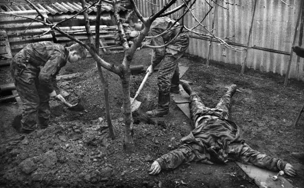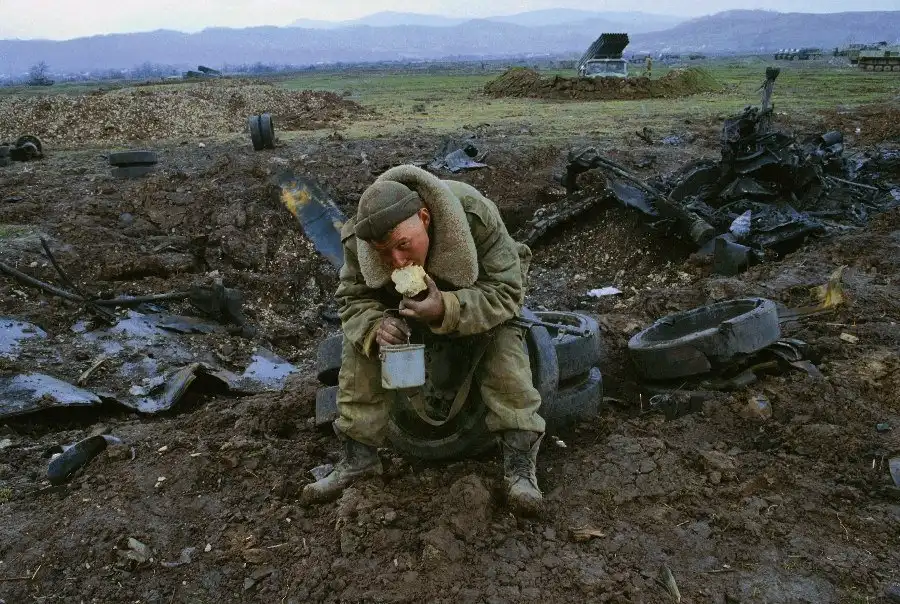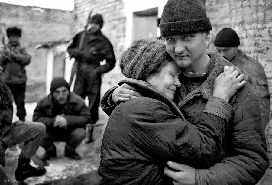 На всех этих снимках вы видите войну - тоскливую, грязную, подлую войну. И людей, от нее пострадавших. Все фотографии сделаны очень мужественными людьми - моими коллегами военными корреспондентами. Вчера мы пронесли по московским бульварам эти страшные лики войны, пройдя колонной в антивоенном марше. Наша походная выставка называлась "Одна секунда войны".