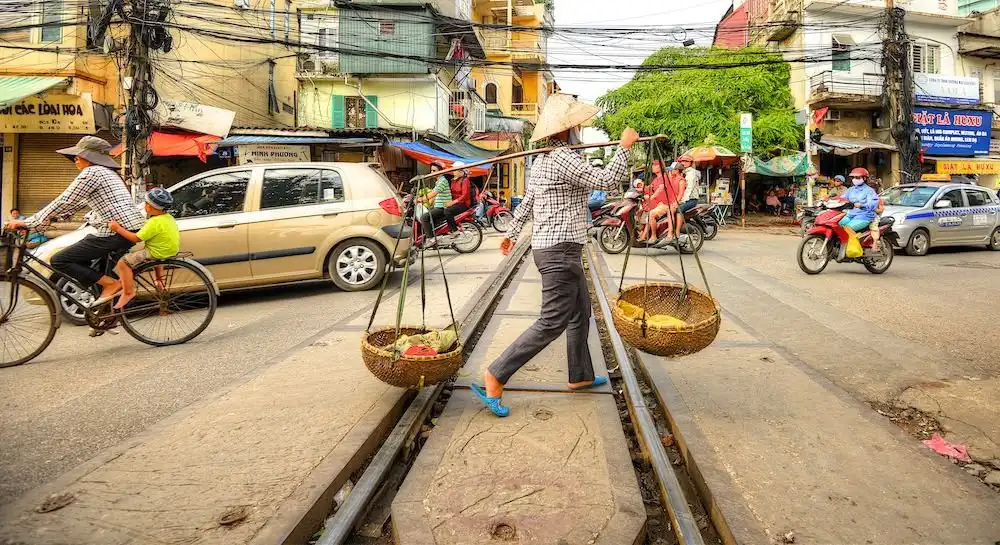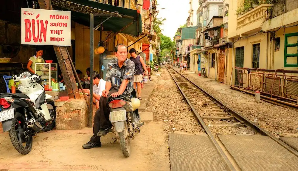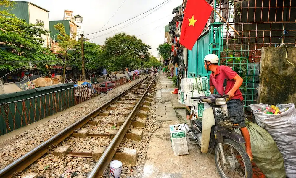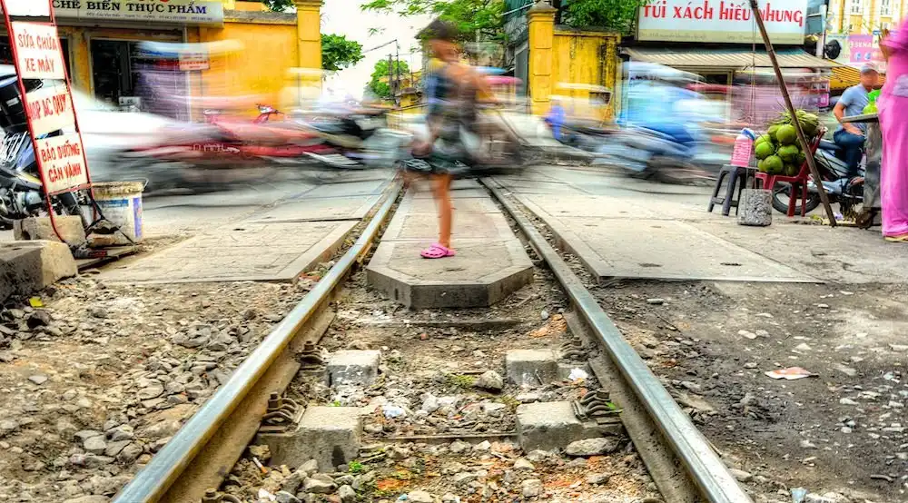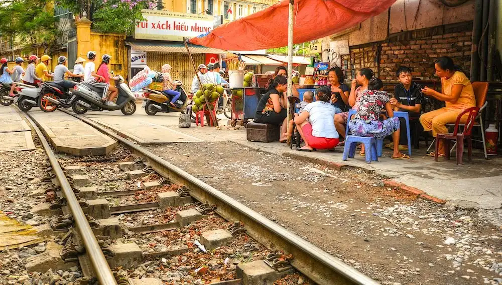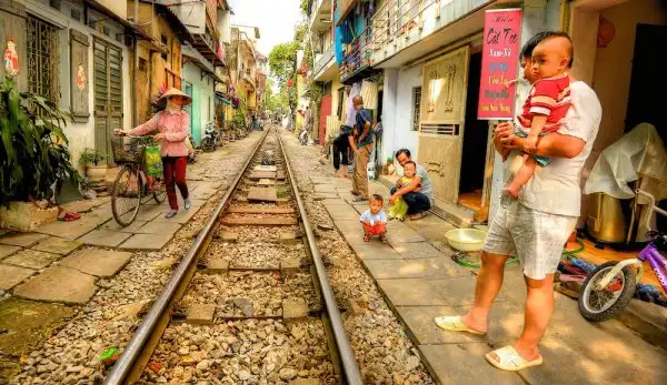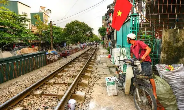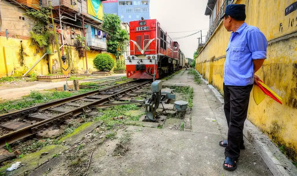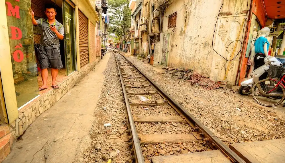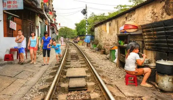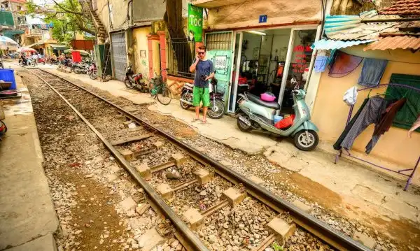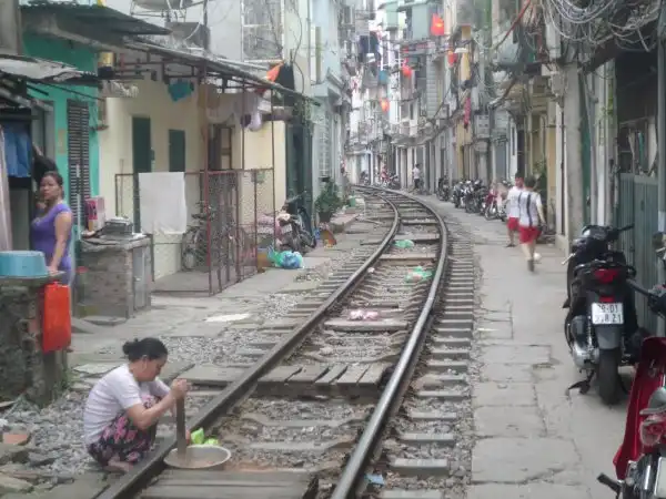 Ханой является уникальным городом из-за его узких улочек и зданий. А так как железнодорожный вокзал расположен в центре города, это не удивительно, что железнодорожная линия проходит по оживленным улицам.