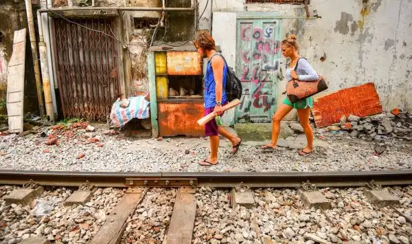 Дорога к мосту Лонг Бьен проходит через Старый квартал – густонаселенный жилой массив. Дома здесь расположены так близко к рельсам, что люди могут легко быть задавленными , если выйдут из дома в самое неподходящее время.