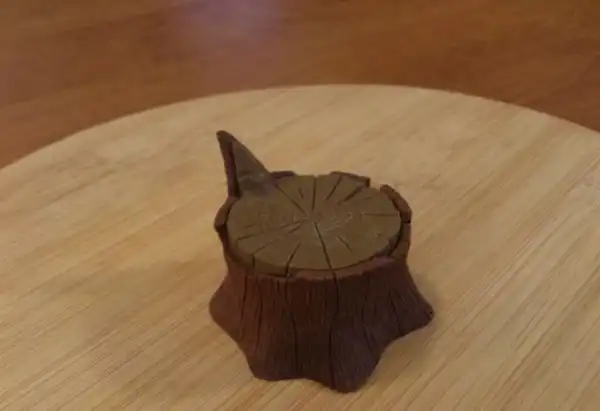 Здесь пень уже облеплен и я предал ему эффект коры и годовых колец. Он ещё мягкий, не запечён. С пнём пока всё. Отложим его.
