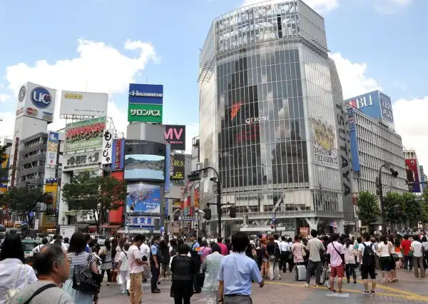 Следующая фотка – не час пик. Это нормальная, обычная картина на улицах Токио.