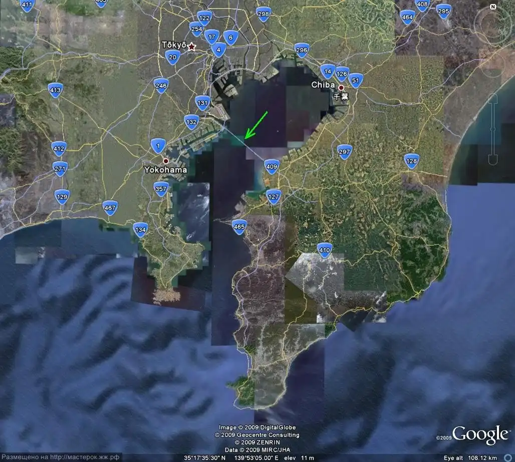 Самый длинный в мире подводный туннель для автомобилей. Соединяет города Кавасаки и Кисарадзу. Длина – 14 км, из них 9,6 – туннель, 4,4 – мост.
