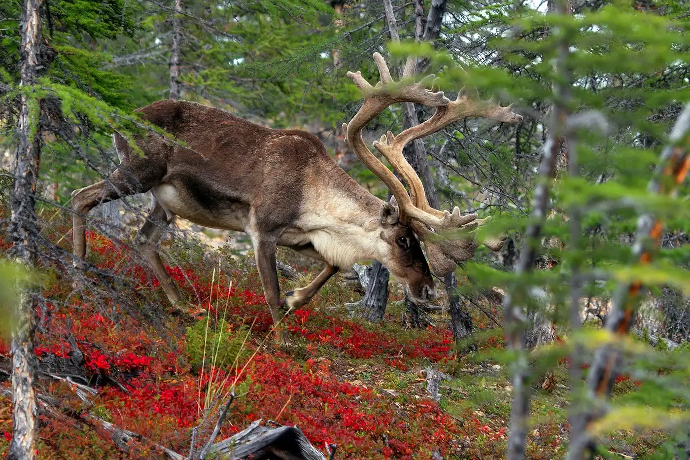 На плато Анабар обитает одно из самых многочисленных стад диких оленей, около 2 млн животных. Конец августа приходится на начало миграции оленей, когда они с морского побережья возвращаются в зону лесотундры и тайги. Плывешь по реке как в зоопарке, по берегам ходят толпы оленей, которые совершенно никого не боятся, и даже не убегают. Возможно, они вообще никогда не видели людей, и для них это первая встреча.