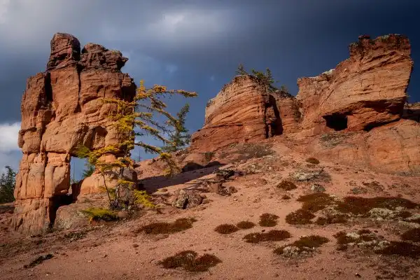 Древнейшее на Земле горное плато Анабар – одно из таких мест в Арктике. Находится оно на северо-востоке Среднесибирского плоскогорья, на территории, ограниченной с востока нижнем течением реки Лена, с запада – горным массивом плато Путорана. И представляет собой куполообразный выступ древнего фундамента Сибирской платформы, сложенный породами, возраст которых более 3 млрд лет. Особенную красоту плато придают широкие и глубокие речные долины, покрытые редкой лиственничной тайгой. На вершинах Анабара – горная тундра и многочисленные каменные развалы. Климат здесь отличается крайне суровыми, продолжительными зимами и прохладным летом.