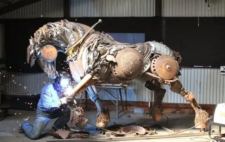 Когда-то давно Джон занимался традиционной скульптурой, работая с бронзовым литьем. Но в какой-то момент мужчина открыл для себя свалку металлолома и понял, что куски старых машин и механизмов являются идеальным материалом для создания скульптур. Вооружившись болгаркой и сварочным аппаратом мистер Лопез начал творить. Небольшая подборка работ за несколько последних лет .