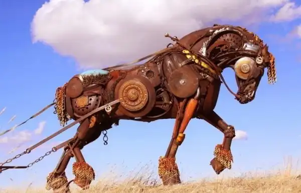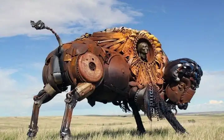 Старый металл может пойти в переплавку и превратиться в новые вещи или детали. А может попасть в руки к скульптору Джону Лопезу, который живет на ранчо в Дакоте.