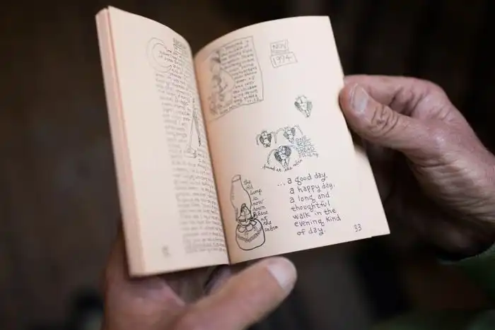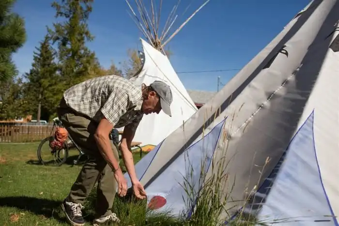 До того, как Дэн построил свою Нору Хоббита, он жил в вигваме. Фото представлено на выставке фотографий, посвящённой индейскому народу Не-персе. На ней запечатлен Прайс, помогающий демонтировать вигвам. «Прежде чем сюда пришли колонисты, здесь не было ни куска бетона, ни телефонных столбов, ни заборов, ни проволоки, ни дорог. И без всего этого они жили здесь счастливо в согласии с природой. Эта мысль совершенно перевернула моё представление о жизни. Поймите, я не иду дорогой, которой идут все. Я иду в обратном направлении.