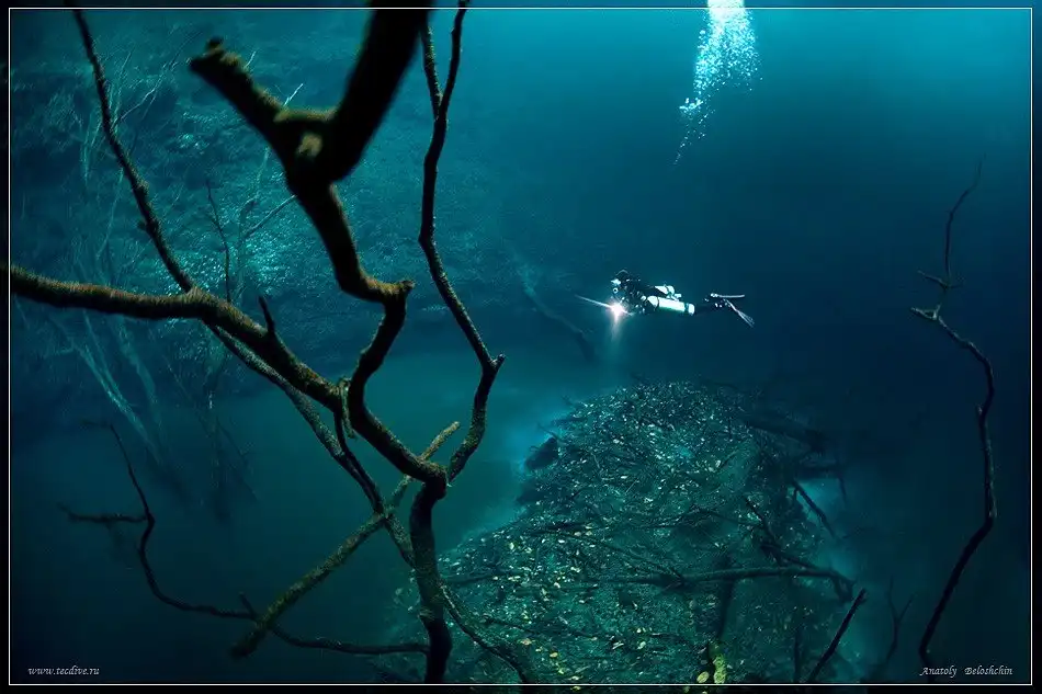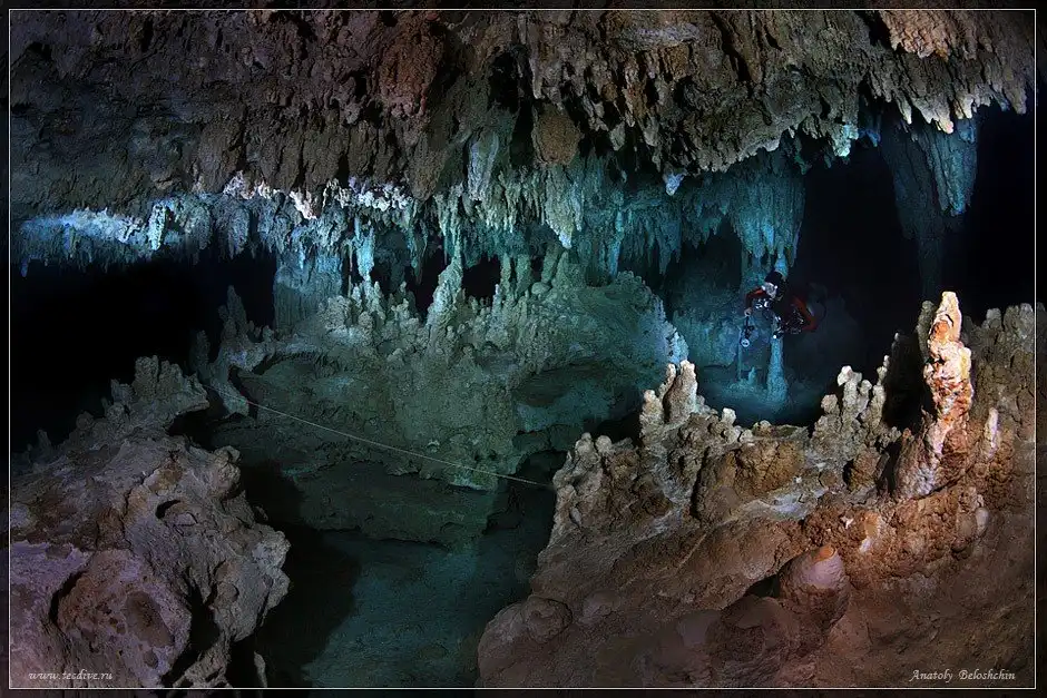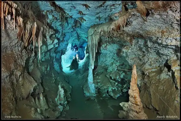 Далее представляем снимки пещер этой подводной реки, сделанные профессиональным дайвером и фотографом Анатолием Белощиным.
