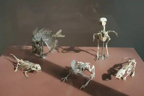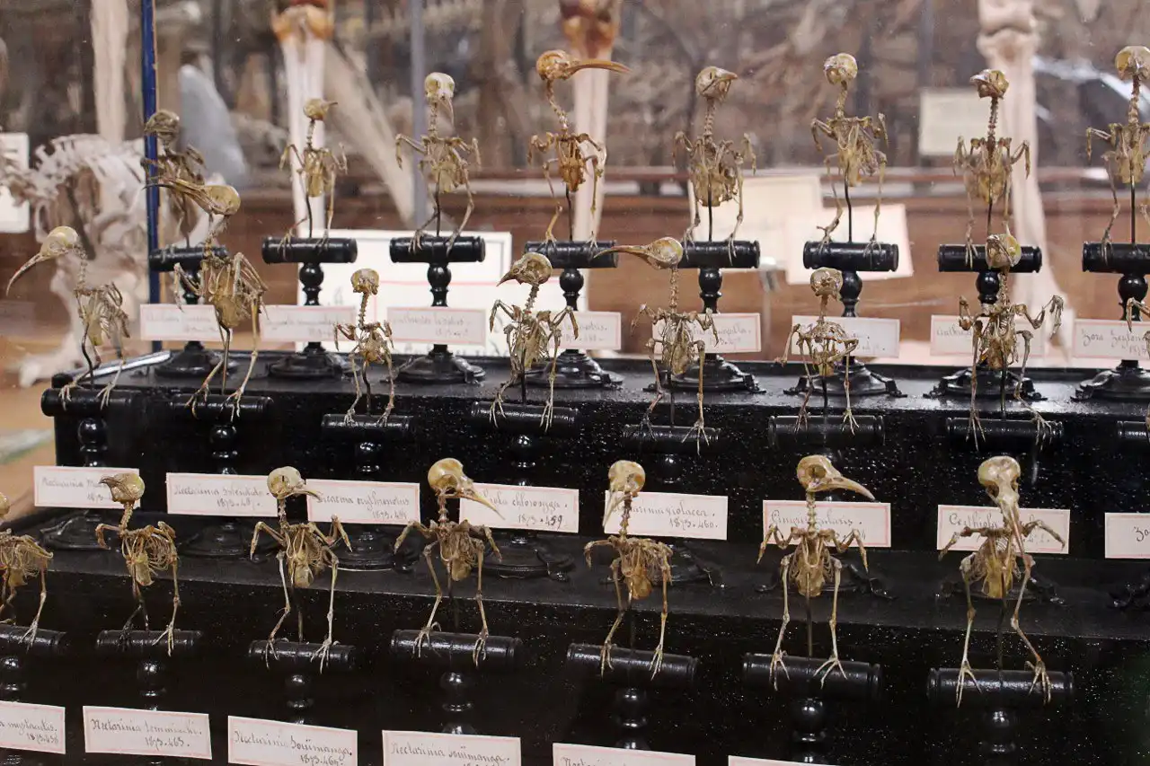 На первом этаже разместились скелеты всех обитающих на планете позвоночных: рыб, птиц, рептилий, млекопитающих. Здесь можно увидеть костный остов и мыши, и жирафа, и кита. Экспонаты расположены в определенном порядке, позволяющем проследить эволюцию животных и последовательность адаптации их отдельных видов к условиям окружающей среды. Скелеты наземных млекопитающих установлены таким образом, что создается впечатление, будто они бегут навстречу посетителям.
