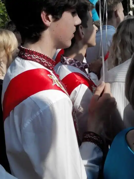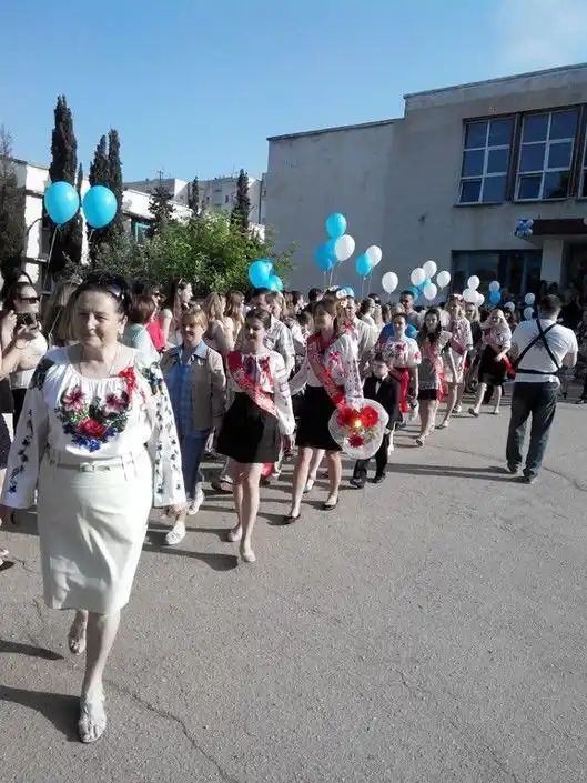 В гимназии № 5 им. Леси Украинки в городе Севастополь в Крыму состоялся праздник последнего звонка. Выпускники , а также их учительницы пришли в школу в вышиванках.